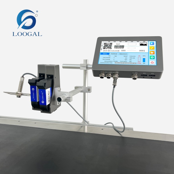 可喷印可变数字、条码、二维码等可通过以太网接收和打印实时数据,连接PLC或其它设备传输数据,支持IO接口连接报警装置控制产线运行